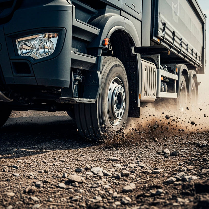 Baixa retenção de pedras, alta recapagem e resistência a danos.